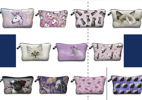 Cute travel Cosmetic Bags. 11 different choices to choose from